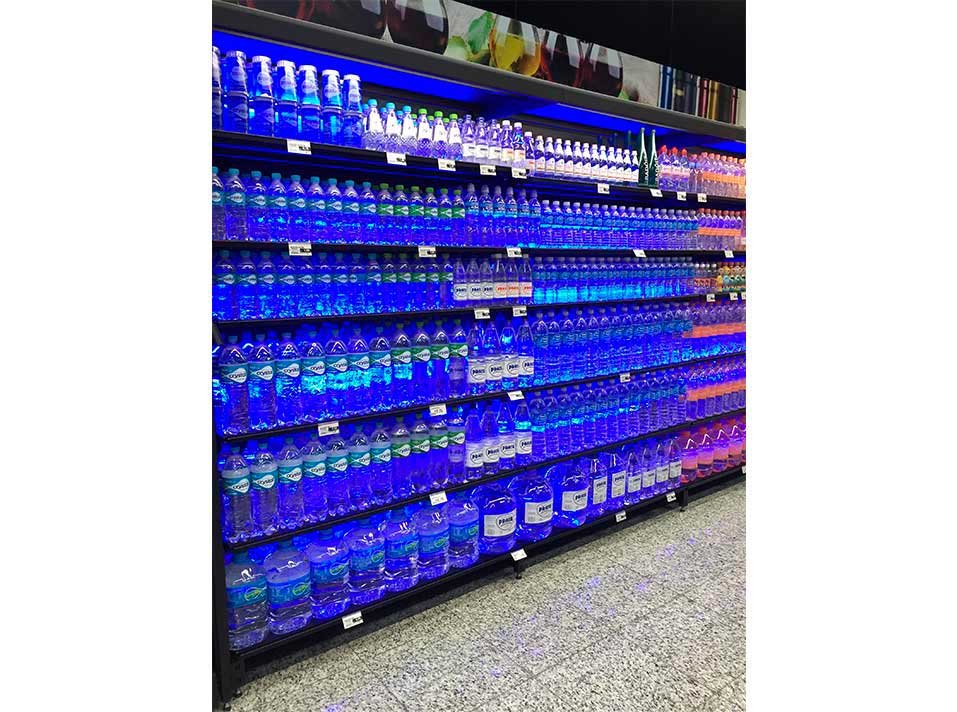 - Iluminação em Led, posicionada à frente da prateleira dando mais visibilidade ao produto exposto