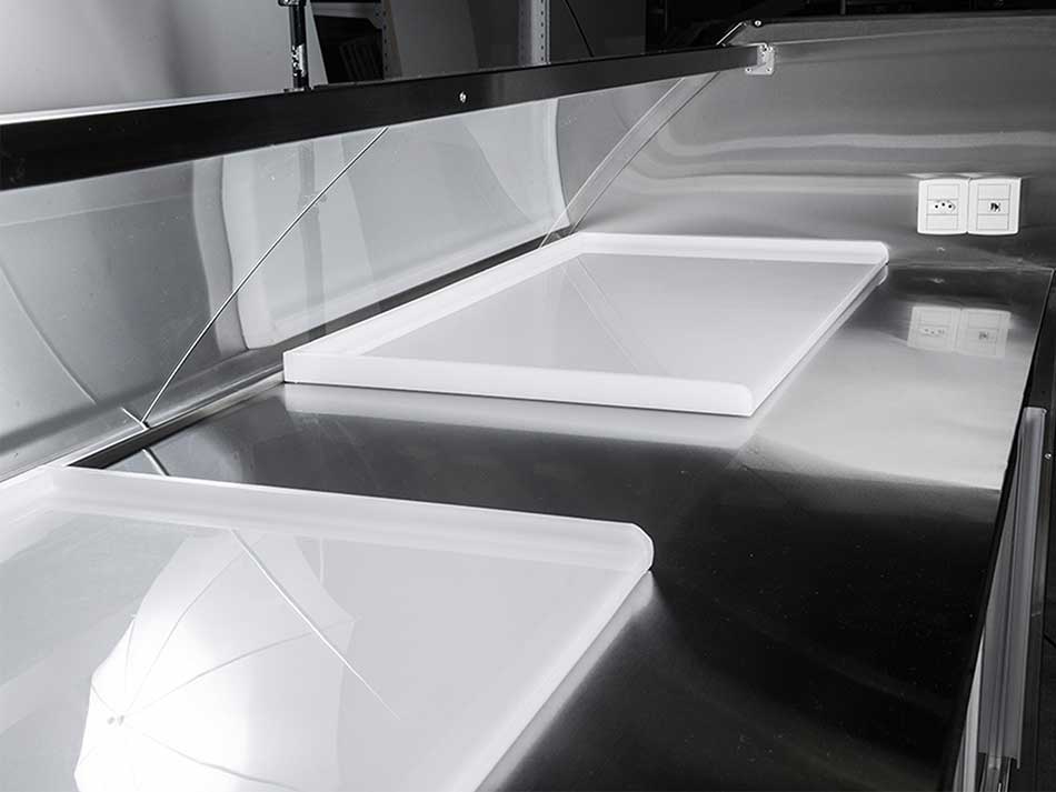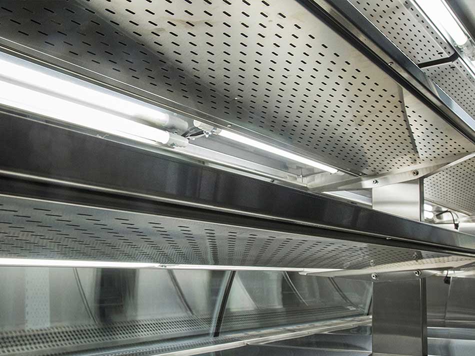 El diseño de los vidrios y su gran área expositiva proporcionan una amplia visibilidad de los productos expuestos. Todos los balcones refrigerados están dotados de vidrios dobles termo aislantes y resistencia periférica al vidrio, garantizando así la no condensación de la superficie del vidrio.