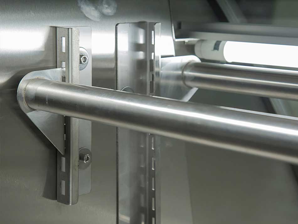 - Gancheros con regulación de altura en acero inoxidable 304