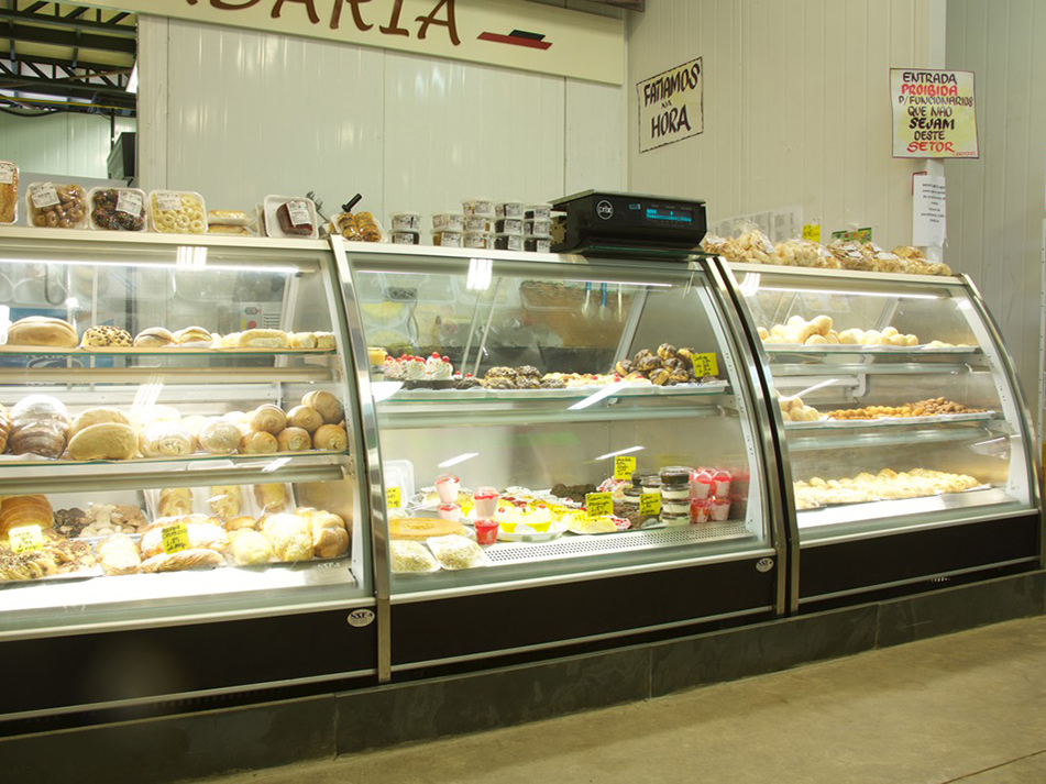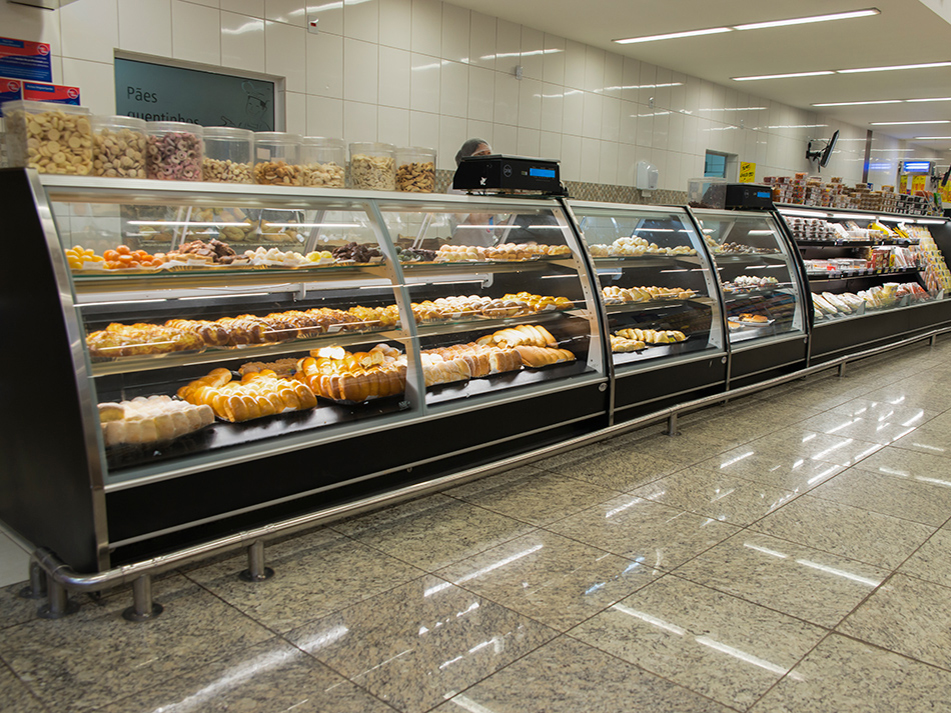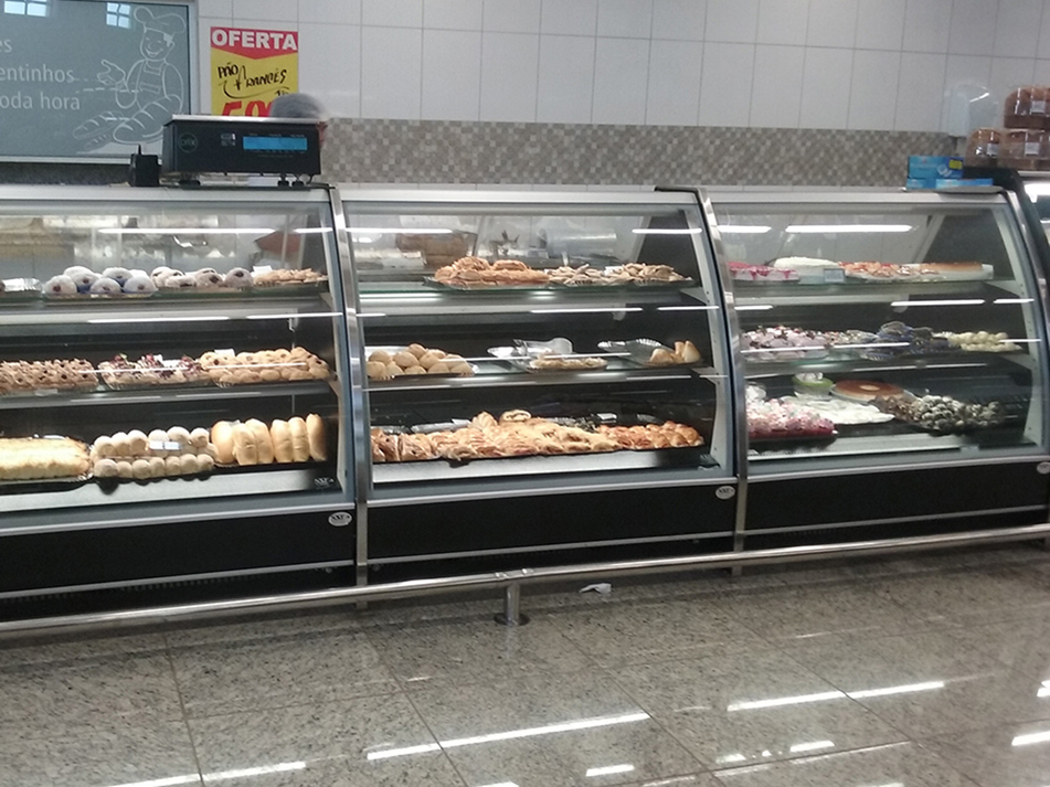 Balcón vidrio curvado con 2 estantes: 1 - ambiente para panes; 2º - calentado; 3º- resfriado