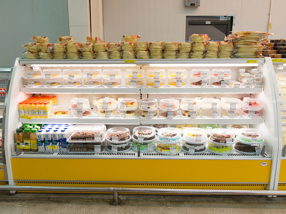 Balcón vidrio curvado con 2 estantes enfriado para fríos en corte